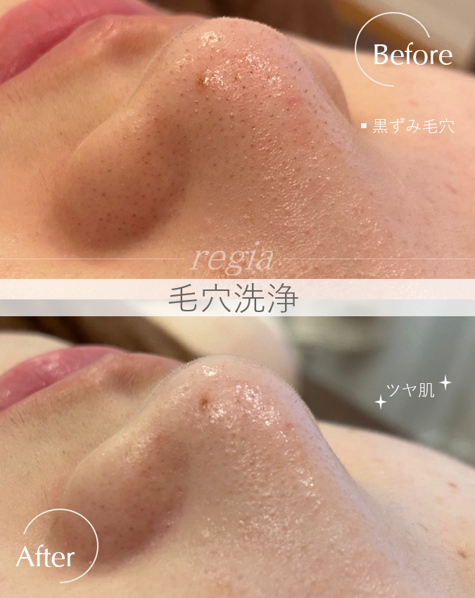 ポツポツ毛穴が目立ちましたが、アフターではごっそり消えています😊