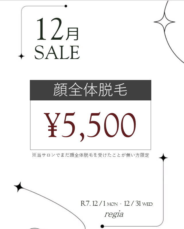 1️⃣顔全体脱毛 ¥5,500⭐️